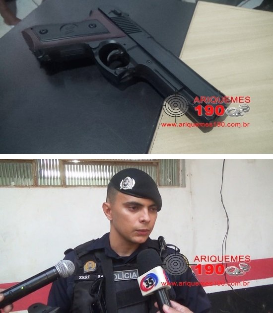 Por volta das 17 horas de quarta-feira (24/05), a Central de Operações (C.O), foi informada através de uma ligação feita ao número de emergência 190, que na Praça do Setor 05, um indivíduo portando uma arma de fogo do tipo pistola tinha acabado de intimidar os frequentadores da referida Praça. As guarnições de serviço se deslocavam para o local, quando um indivíduo com as mesmas características do suspeito foi visto na Rua Roraima, no Setor 05, quase chegando à Avenida Tancredo Neves. O suspeito foi abordado e constatado que se tratava de um indivíduo de 17 anos, que carregava na cintura o simulacro de uma pistola, sendo uma arma de Airsoft que não continha a ponta laranja, exigida por lei. O menor disse que está sendo ameaçado por um elemento e que sua intensão era intimidar o sujeito a fim de por fim as ameaças. O pai do menor acompanhou o registro da ocorrência nº 81725/17, na Delegacia Especializada no Atendimento a Mulher, para as devidas providências.