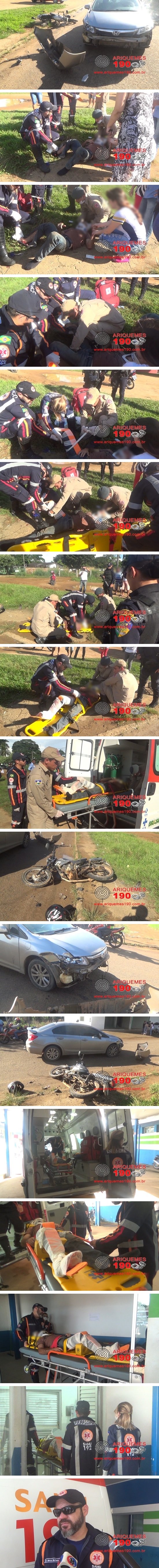 Na tarde desta quinta-feira 25/05, as equipes de socorro do Serviço de Atendimento Móvel de Urgência (SAMU) e do Corpo de Bombeiros, foram acionadas a comparecer na Rua Quatro Nações no Setor Institucional de Ariquemes, onde próximo a Capela, havia acontecido uma acidente de trânsito. Ali chegando, os socorristas constataram que o motociclista apresentava uma fratura no fêmur e uma fratura exposta no tornozelo. Imediatamente, foi iniciado a atendimento pré-hospitalar, onde a vítima foi imobilizada, em seguida conduzida ao pronto socorro para receber atendimento médico especializado. Informações colhidas no local dão conta que a vítima conduzia uma motocicleta da marca Yamaha, modelo YBR de cor prata, quando veio a colidir com um carro da marca Honda, modelo Civic de cor prata. Com o impacto da colisão, o para-choque do carro foi arrancado. Em entrevista para o Programa Bronca da Pesada, Dr. Marcos Machado relatou que a fratura exposta no pé do rapaz é grave, tendo em vista que houve multifragmentação do osso.