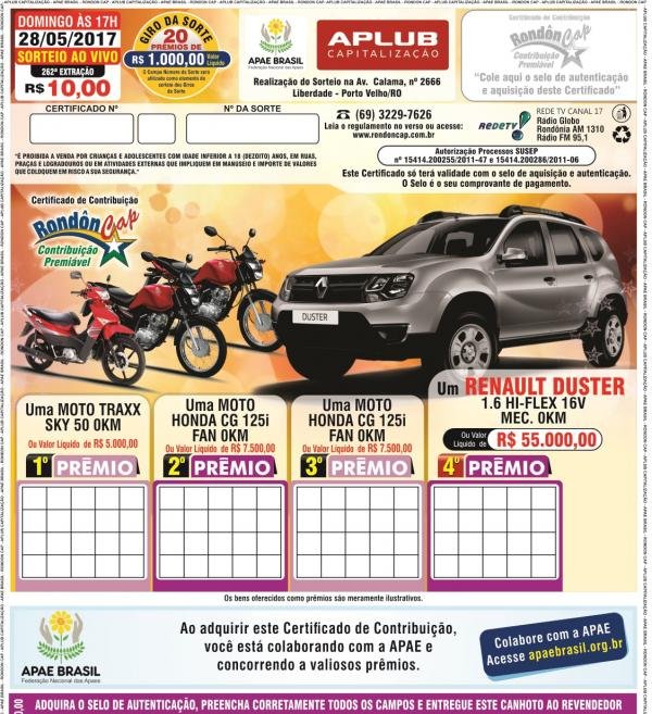 Rondocap vai sortear R$ 95.000,00 mil reais em prêmios – 4º prêmio é Renault Duster