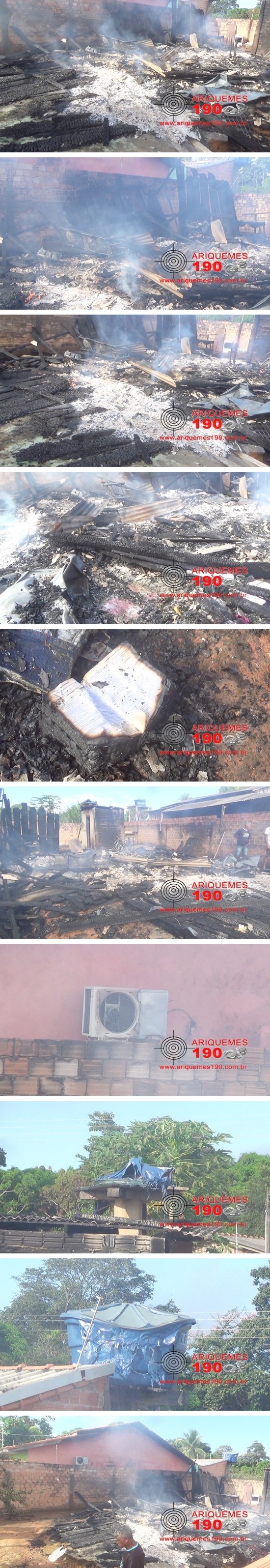 Durante a noite desta quinta-feira 25/05, uma residência localizada na Rua Yaci, no Jardim das Flores foi completamente destruída por um incêndio. Devido ao fato de a casa ser de madeira, mesmo com o trabalho e empenho dos Bombeiros, não foi possível salvar nenhum móvel ou roupas e documentos. Na manhã desta sexta-feira 26/05, a equipe de reportagens do Site Ariquemes190, retornou ao local do incêndio, onde foi possível ver com mais detalhes a destruição que o fogo causou. Em contato com a vítima que estava na casa no momento do incêndio, a moça relatou que estava sozinha, quando desligaram o padrão de energia. Com a vítima no escuro, elementos arrombaram a porta e agrediram a moça com pancadas na cabeça. A vítima relata que após a agressão, só recorda que notou fumaça vinda em sua direção, em seguida desmaiou. Ainda segundo a jovem, a casa pertence ao seu pai, que recentemente foi baleado e está com as duas pernas quebradas. Devido ao fato de tudo ter sido destruído, a vítima precisa de ajuda e quem puder doar qualquer coisa, pode estar entregando na casa da vizinha da maça.