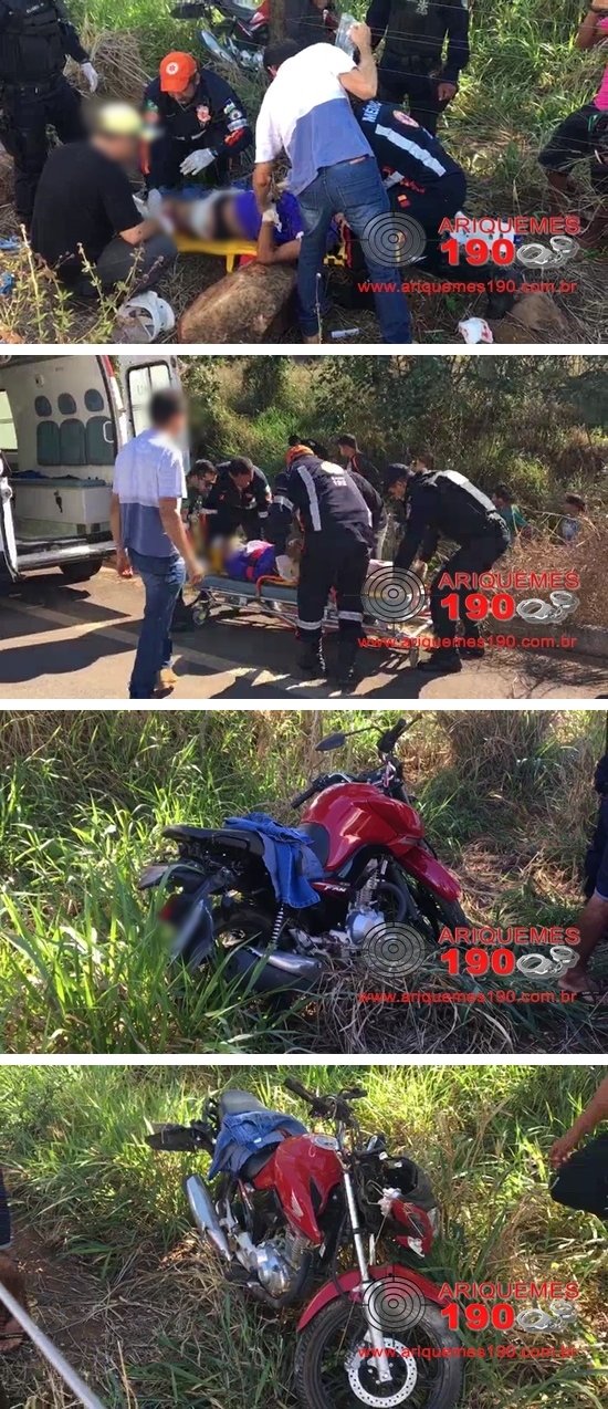 Durante a tarde deste sábado 03/06, a guarnição da Polícia Militar e a equipe de socorro do Serviço de Atendimento Móvel de Urgência (SAMU), foram acionadas a comparecer no Km-26, da BR-421 de Ariquemes sentido Monte Negro, onde havia acontecido um acidente de trânsito. Chegando no local, os socorristas se depararam com um motociclista caído na lateral da via, apresentando muito sangramento e uma fratura exposta no fêmur da perna esquerda. Durante a coleta de dados, os Militares foram informados que a vítima de 18 anos de idade, conduzia uma motocicleta da marca Honda, modelo Fan de cor vermelha, quando em dado momento, saiu da pista e caiu em uma vala na lateral da BR. A equipe do SAMU composta pelo Dr. Rodrigo Mezzomo, Enfermeiro Marcone e Condutor Socorrista Josué, conteve o sangramento, em seguida imobilizaram o rapaz ao Pronto Socorro, onde assim que chegou, já foi encaminhado a sala de cirurgia. Em entrevista ao Programa Bronca da Pesada, Dr. Mezzomo relatou que no momento que os socorristas chegaram ao local do acidente, a perca de sangue era tanta, que poderia fazer com que a vítima tivesse um choque hipovolêmico que poderia levar a morte rapidamente, caso o sangramento não fosse contido.