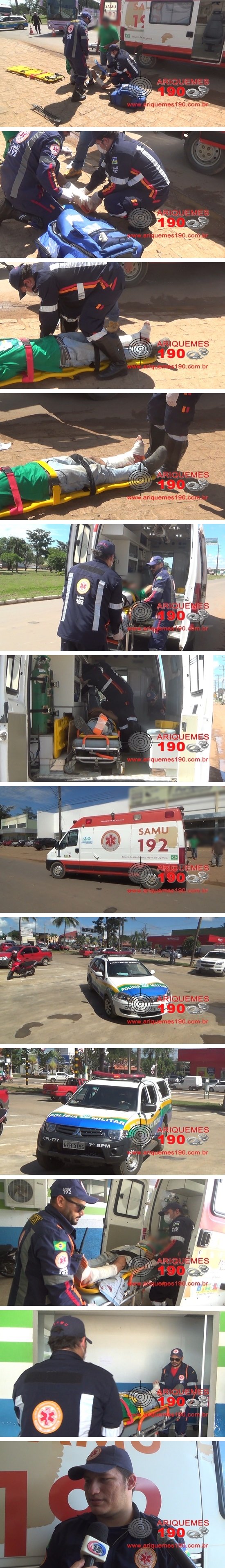 ARIQUEMES: Em acidente, motociclista sofre fratura ao prender perna entre roda e para-lama