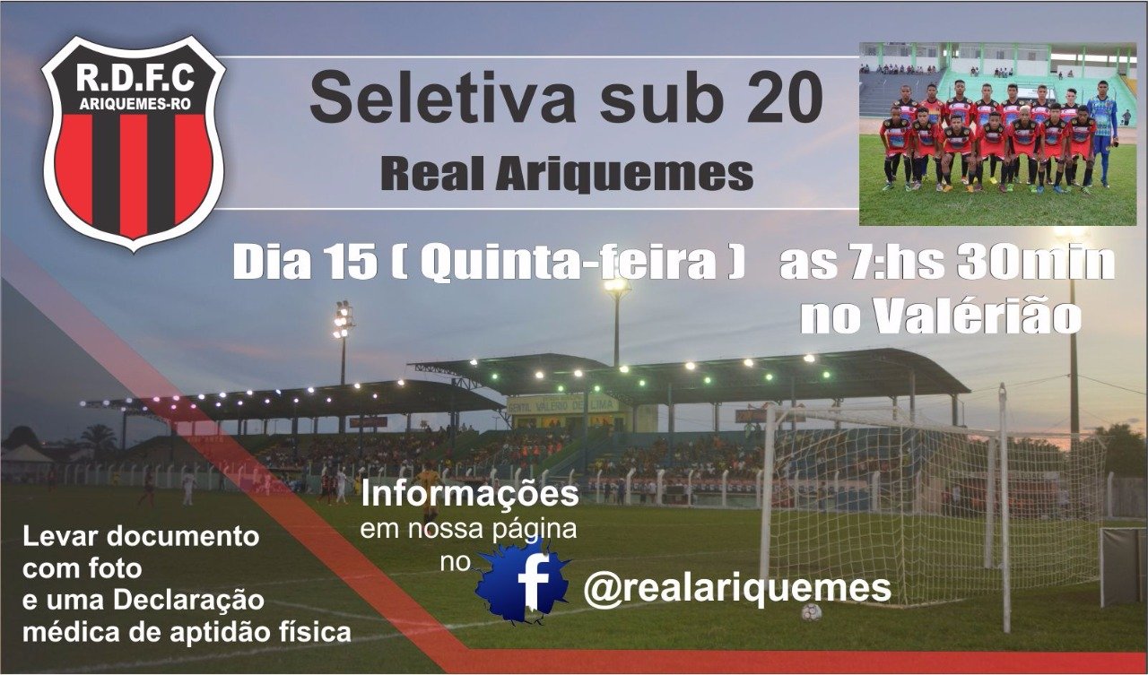 As informações referente a seletiva que será para atletas de todo o Estado de Rondônia poderão ser adquiridas via mensagem pela página do Clube no Facebook ( @realariquemes ).