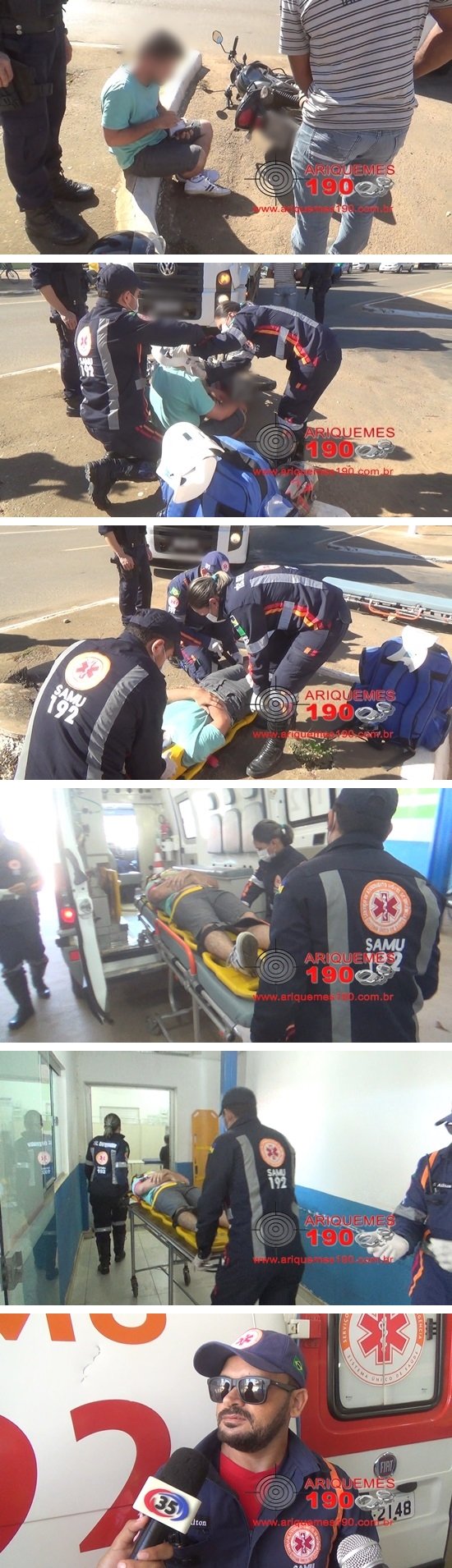 Na manhã desta sexta-feira 16/06, a equipe de socorro do Serviço de Atendimento Móvel de Urgência (SAMU), foi acionada a comparecer na Avenida Tancredo Neves, no centro de Ariquemes, para atender uma ocorrência de acidente de trânsito. Ali chegando, os técnicos em enfermagem Sonari e Ademir, juntamente com o Condutor Socorrista Ailton, encontraram o condutor da motocicleta sentado na lateral da via apresentando escoriações. Populares informaram que o jovem conduzia uma motocicleta da marca Honda, modelo Fan de cor preta, quando ao tentar ultrapassar um caminhão que iria realizar o retorno, acabou colidindo lateralmente. O jovem foi imobilizado e conduzido ao pronto socorro para receber atendimento médico especializado.