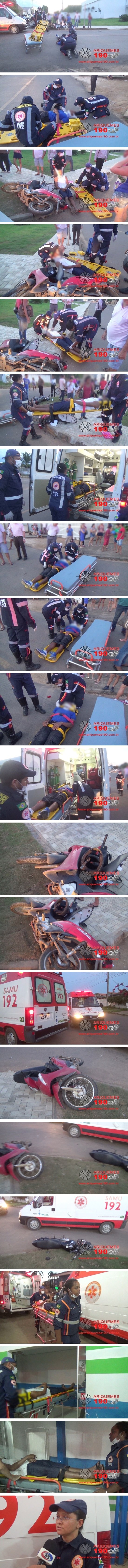 Conforme o Boletim de Ocorrência de Acidente de Trânsito (BOAT), sob n° 276/2017, registrado pela Polícia Militar, no fim da tarde desta segunda-feira 19/06, mais um acidente de trânsito foi registrado em cruzamento da Avenida Quatro Cachoeiras no Setor 03. Informações colhidas no local dão conta que o condutor de uma motocicleta da marca Honda, modelo Fan de cor preta, transitava pela Rua Salvador, da Av. Tabapuã sentido a Av. Jaru, quando atravessou a Av. Quatro Cachoeiras resultando na colisão com a motoneta da marca Honda, modelo Biz de cor vermelha. Após o impacto da colisão dos veículos, o passageiro da moto Fan caiu ao solo, onde permaneceu enquanto o condutor se evadiu. O passageiro relatou que o rapaz que conduzia a motocicleta não possuía habilitação. Duas equipes do Serviço de Atendimento Móvel de Urgência (SAMU), compareceram no local, onde atenderam ao condutor da Biz e ao passageiro da Fan que foram encaminhados ao pronto socorro para receber atendimento médico especializado. Ambos os veículos estavam com a documentação atrasada e foram conduzidos ao pátio da Circunscrição Regional de Trânsito (CIRETRAN).