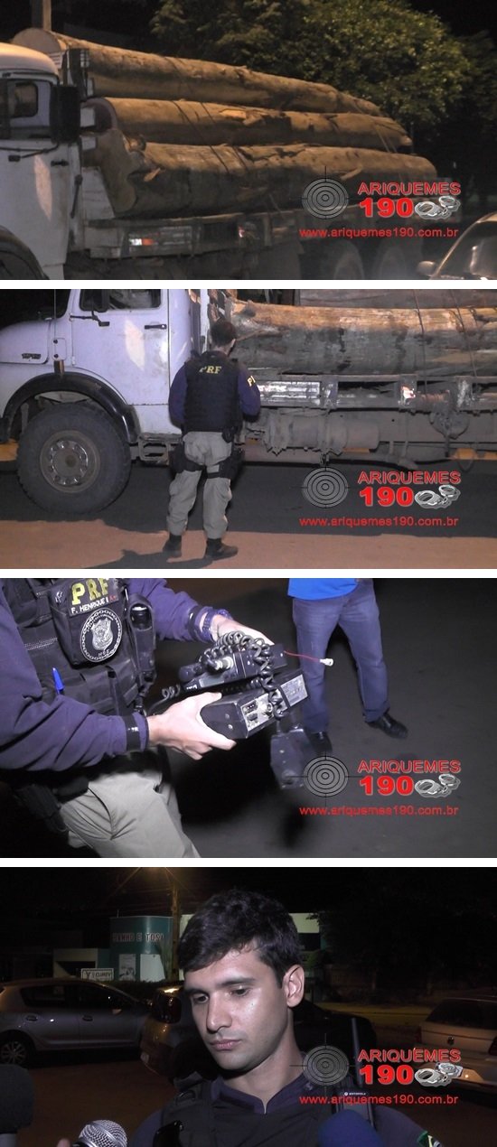 Por volta das 19h30min de sexta-feira (23/06), em uma barreira montada pelos Policiais Rodoviários Federais: D. Silvério, F. Henrique, Barreto, Aguiar, Gonçalves, Benedetti, Ivan Cidrin, Getúlio, Gaertner e Alapenha, na altura do Km-14 da BR-421, foi abordado um veículo da marca Mercedes Benz, modelo 1519 que estava sendo conduzido pelo indivíduo R.B. de 42 anos, o qual transportava 99 metros cúbicos de toras sem qualquer tipo de documentação. Os Policiais localizaram um rádio transceptor (PX) em pleno funcionamento e sem autorização. Em seguida foi abordado um veículo da marca Ford, modelo Ranger, que estava sendo conduzida pelo irmão do caminhoneiro R.B. de 48 anos, na caminhonete os Policiais encontraram um rádio transceptor (PX) funcionando. Os irmãos, os veículos e as toras foram conduzidos a Delegacia Geral em Ariquemes, onde foi registrada a ocorrência nº 100615/17, para as devidas providências.