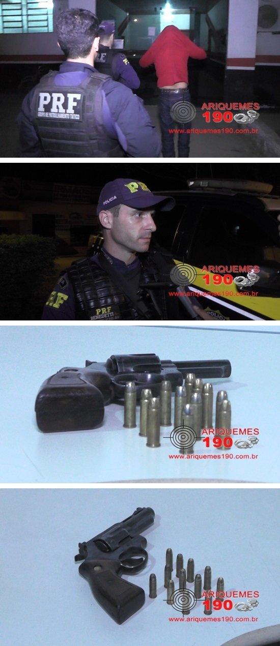 Por volta das 20 horas, desta sexta-feira 23/06, a guarnição da Polícia Rodoviária Federal (PRF), realizava abordagens na BR-421, quando em dado momento, deu ordem de parada ao condutor de uma motocicleta da marca Honda, modelo Bros. Em revista pessoal, foi encontrado com o condutor, um revólver calibre .38 contendo 6 munições, além de outras 6 munições no bolso do motociclista. Segundo o infrator, o mesmo teria comprado a arma pela quantia de R$ 1.000,00. Diante do exposto, o condutor, a arma e as munições, foram apresentados na Delegacia de Polícia Civil de Ariquemes, onde foi registrado o Boletim de Ocorrência Policial (BOP), para a tomada das providências que o caso requer.