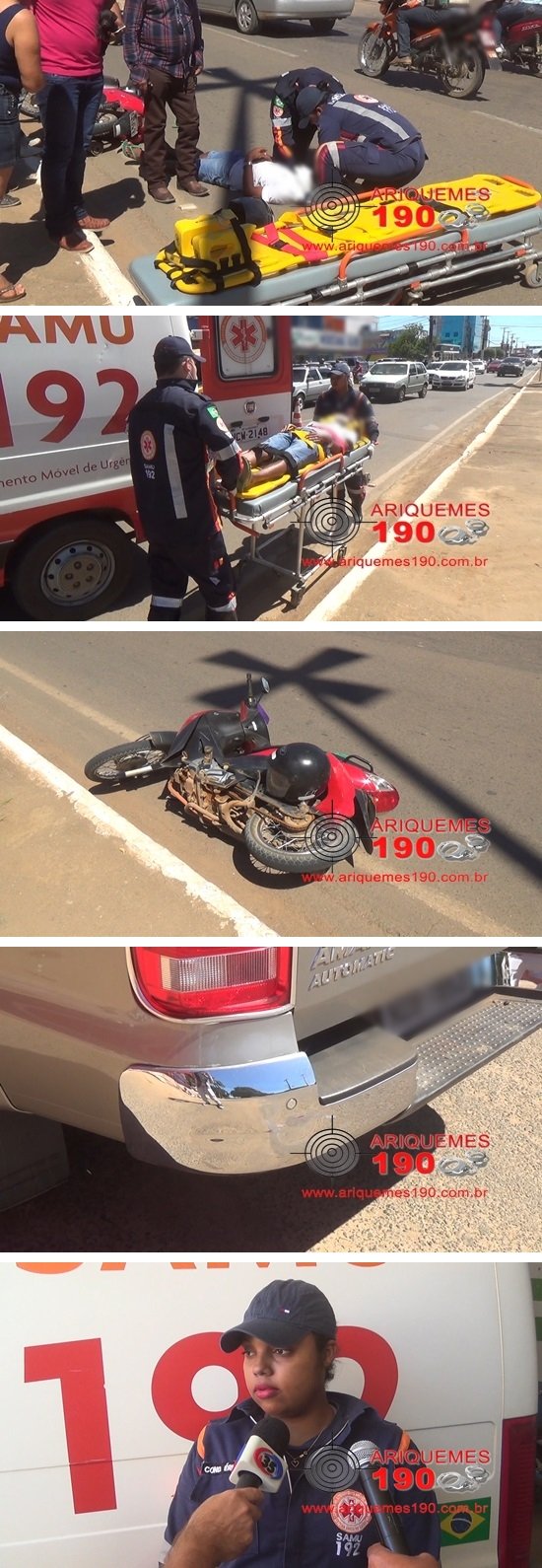 ARIQUEMES: Motociclista colide em traseira de caminhonete na Av. Tancredo Neves