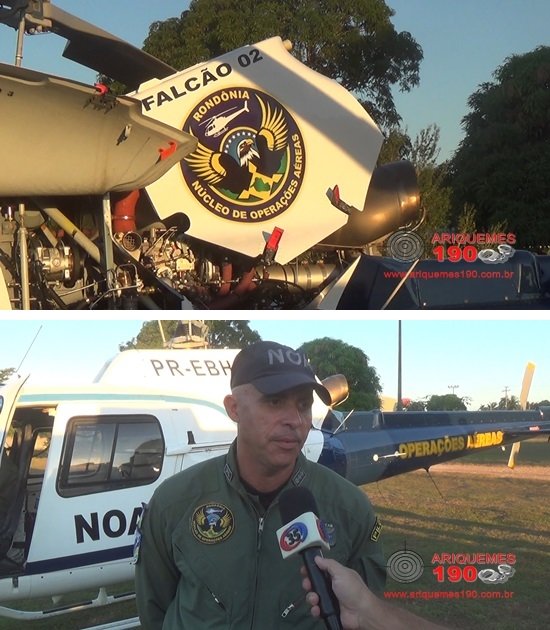 No final da tarde de quarta-feira (28/06) chegou a Ariquemes o helicóptero Falcão 02 do Núcleo de Operações Aéreas (NOA) da Secretaria Estadual de Segurança, Defesa e Cidadania (SESDEC), coordenada pelo Major Lopes, que disse a nossa reportagem que a missão da equipe é reforçar o patrulhamento em toda região do Vale do Jamari, uma vez que é grande o número de roubos a propriedades rurais. Elementos armados invadem sítios, chácaras e fazendas e depois de abandonarem as famílias amarradas dentro de suas próprias residências se evadem levando caminhonetes, motos, joias, objetos de valor, equipamentos de trabalho e tudo mais que veem pela frente, causando prejuízos enormes as vítimas. O Governador do Estado Confúcio Moura, preocupado com os acontecimentos deu ordens expressas para o Major Lopes e sua equipe patrulhar, localizar e prender qualquer elemento suspeito que esteja em veículos ou não. Conforme explicou o Major Lopes que é um dos pilotos do Falcão 02, os marginais que estão atuando no interior de Ariquemes terão uma surpresa, mas não quis entrar em detalhes, dizendo apenas que em breve os resultados vão aparecer e que a permanência do NOA na região é por tempo indeterminado, podendo dar suporte as guarnições em terra inclusive à noite. A missão do Facão 02 teve inicio na manhã desta quinta-feira (29/06) pelas Linhas e Travessões da extensa área pertencente ao município de Alto Paraíso.
