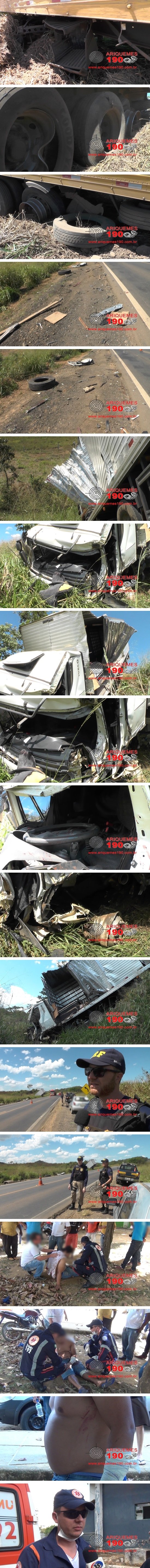 No início da tarde deste sábado 01/07, uma guarnição do Corpo de Bombeiros transitava pela BR-364, quando em dado momento, os Militares se depararam com um acidente envolvendo dois caminhões. Imediatamente, os Bombeiros prestaram atendimento a vítima e conduziram a mesma para Ariquemes. Uma guarnição da Polícia Rodoviária Federal (PRF), também esteve no local e durante a coleta dos dados, os Policiais foram informados que o condutor de um caminhão do Sedex seguia pela BR-364, quando dormiu ao volante, invadiu a pista contrária, e colidiu com um caminhão baú. Ambos os veículos saíram da pista e caíram na ribanceira, por pouco não tombaram. O condutor do caminhão baú sofreu alguns ferimentos leves e foi socorrido ao Hospital de Ariquemes. Após receber o primeiro atendimento no pronto socorro, a vítima foi liberada. Mais tarde, a equipe de socorro do Serviço de Atendimento Móvel de Urgência (SAMU), foi acionada a comparecer na rodoviária, onde havia uma pessoa em crise. Ali chegando, os socorristas constataram que a vítima do acidente na BR-364, estava tento uma reação pós-traumática. Os socorristas atenderam a vítima no local, porém, no momento de voltar para o Hospital, a vítima se recusou e relatou que queria ir para casa. Foi assinado um termo de responsabilidade pela vítima, em seguida a mesma foi liberada para que pudesse retornar para sua residência.