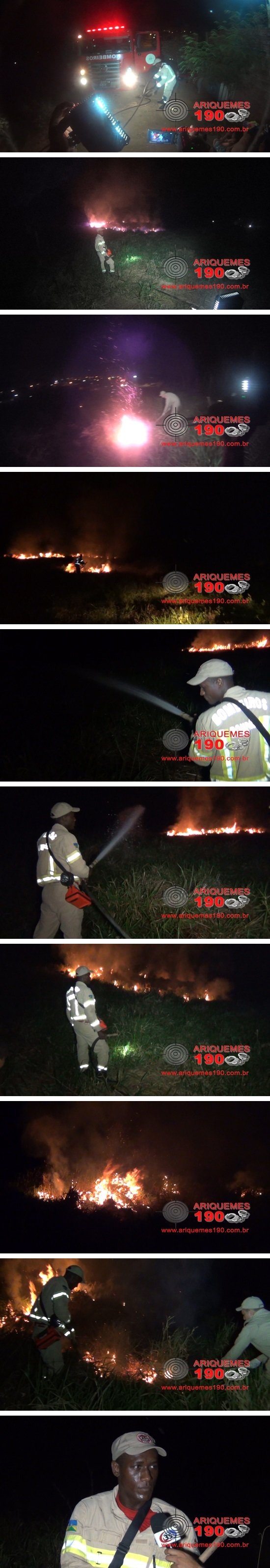 Todos os anos no período de seca, várias queimadas urbanas são registradas, e devido ao tempo seco, as chamas se alastram com facilidade e põem em risco residências, morados e animais. Mesmo sendo considerada crime, as práticas dessas queimadas ainda continuam em Ariquemes e região, e na noite desta segunda-feira 03/07, a guarnição do Corpo de Bombeiros combateu mais um incêndio, desta vez, em um pasto no Setor 09. O fogo que pode ter sido criminoso se alastrou com facilidade e ameaçou as residências vizinhas. Graças ao rápido trabalho dos Bombeiros, as chamas não causaram prejuízos. É importante que a população ajude a combater essas práticas denunciando imediatamente ligando na Secretaria Municipal de Meio Ambiente (SEMA) pelos telefones (69) 3536-1521 ou (69) 8454-8209.