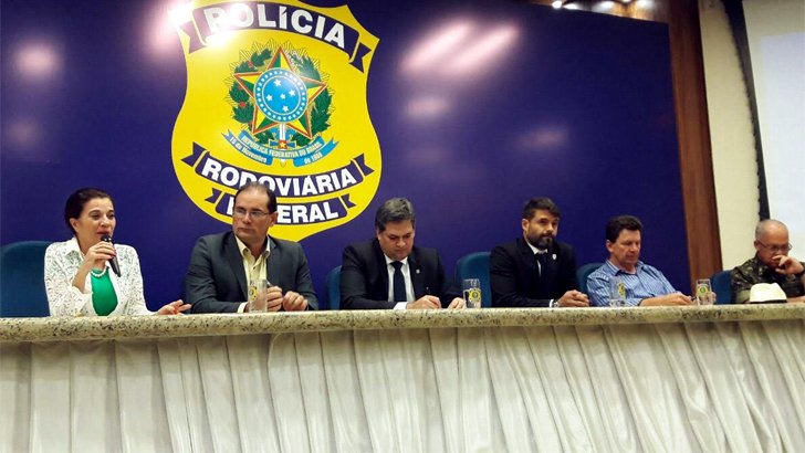 Brasília, DF - Ao lado do vice-governador Daniel Pereira e do diretor geral da Polícia Rodoviária Federal (PRF) em Brasília, Renato Dias, além de diversas autoridades rondonienses e representantes das forças de segurança pública do Estado de Rondônia, a deputada federal Marinha Raupp participou na quinta-feira (29) passada da posso do novo superintendente regional da PRF em Rondônia, inspetor Bruno Ferreira Malheiros.
