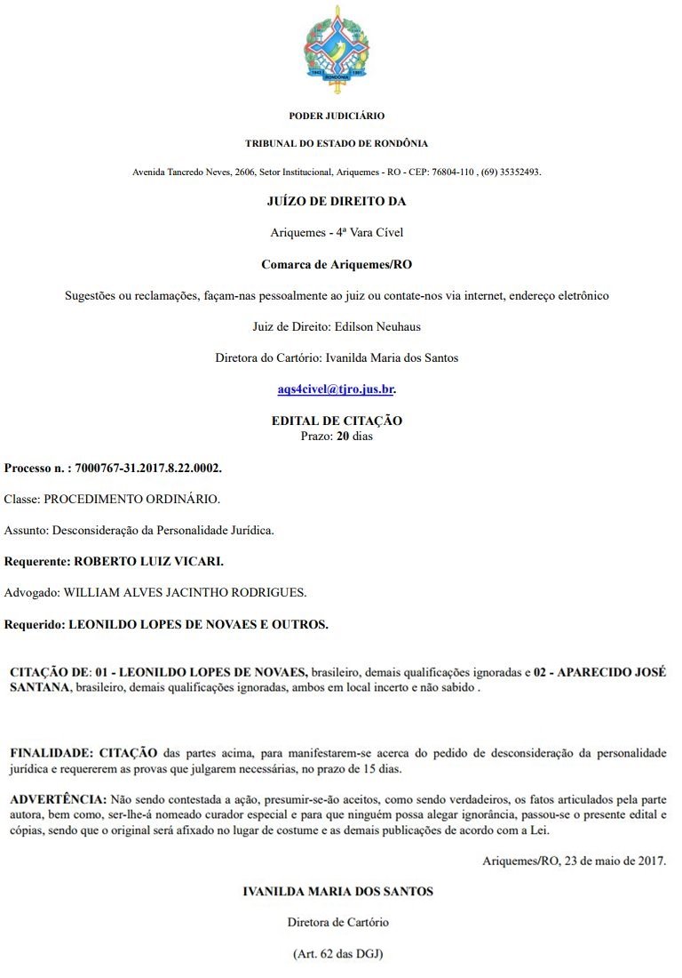 ARIQUEMES: EDITAL DE CITAÇÃO
