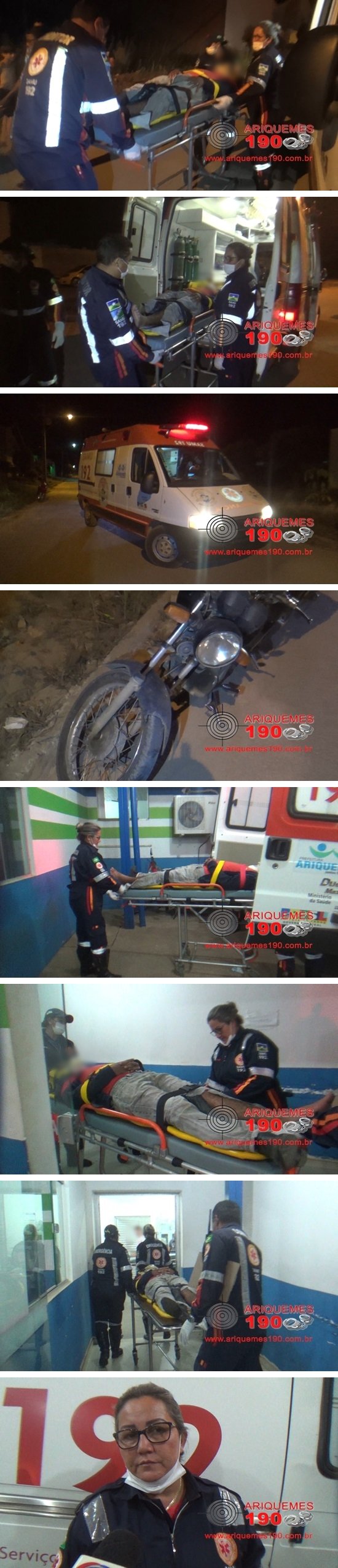 Na noite desta quinta-feira 13/07, a equipe de socorro do Serviço de Atendimento Móvel de Urgência (SAMU), foi acionada a comparecer no Bairro Nova União 3, em Ariquemes, para atender uma ocorrência de acidente de trânsito. Chegando no local, as técnicas em enfermagem Simoni e Edina, juntamente com o Condutor Washington, se depararam com um entregador de pizza, caído ao solo, apresentando uma lesão no pé esquerdo. Segundo o trabalhador, o mesmo estava transitando no local, quando em dado momento, um cachorro atravessou na frente do veículo e causou a queda do mesmo. A vítima foi imobilizada e conduzida ao pronto socorro para receber atendimento médico especializado.