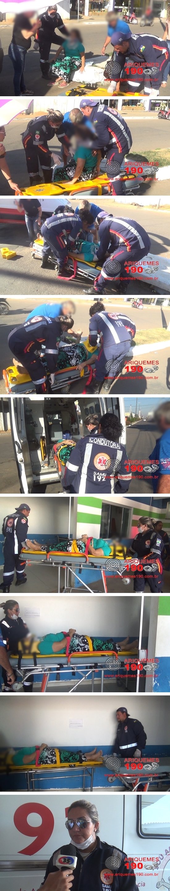 Na manhã deste sábado 15/07, por volta das 8 horas, a equipe de socorro do Serviço de Atendimento Móvel de Urgência (SAMU), foi acionada a comparecer na Avenida Canaã, no centro de Ariquemes, onde havia acontecido um acidente de trânsito. Ali chegando, os socorristas se depararam com uma idosa caída na lateral da via apresentando escoriações. Segundo a vítima, a mesma estava na garupa da bicicleta conduzida por seu esposo, quando em uma manobra, veio a cair ao solo. Os socorristas prestaram o atendimento pré-hospitalar, em seguida conduziram a senhora ao pronto socorro para receber atendimento médico especializado.
