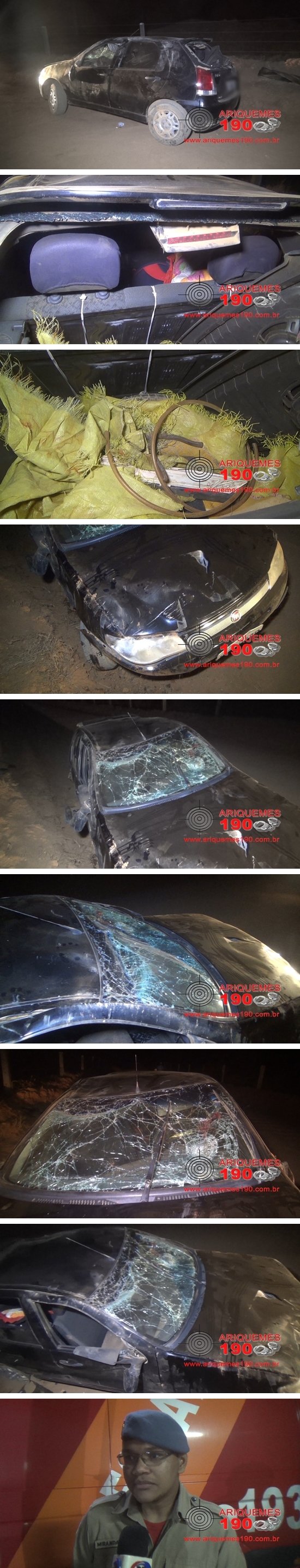 Na tarde deste domingo 16/07, a guarnição do Corpo de Bombeiros foi acionada a comparecer na BR-421 na entrada da Linha que dá acesso ao Garimpo Massangana, onde havia acontecido um acidente de trânsito. Chegando no local, os Bombeiros constataram que se tratava de um capotamento, onde a condutora do veículo sofreu apenas escoriações e seu filho de 5 anos de idade foi socorrido por populares a cidade de Monte Negro. Outra criança que também estava no veículo não ficou ferida. A condutora alegou que conduzia o veículo da marca Fiat, modelo Pálio de cor preto, quando em dado momento, perdeu o controle da direção e capotou.