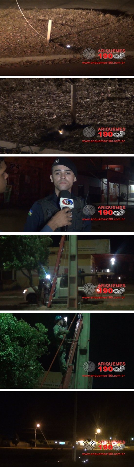 Durante a noite desta segunda-feira 17/07, uma forte ventania atingiu o município de Ariquemes e junto com a ventania foram registrados alguns transtornos aos cidadãos. Entre os prejuízos, o maior dele foi registrado na rede elétrica que além de deixar moradores sem energia nas residências, ainda colocou em risco os cidadãos. Em pelo menos três pontos da cidade, fios de alta tensão arrebentaram, alguns chegaram até a entrar em curto circuito. A Polícia Militar foi responsável em manter a segurança dos cidadãos para evitar que se aproximassem, enquanto equipes de plantão da Eletronorte realizaram reparo da rede.