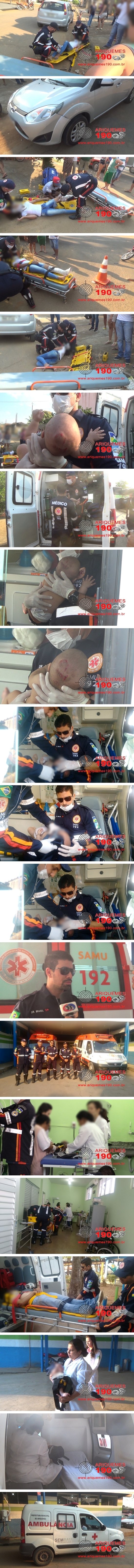 Durante a tarde deste domingo 06/08, a equipe de socorro do Serviço de Atendimento Móvel de Urgência (SAMU), foi acionada a comparecer na Rua Manoel Bandeira no Setor 06 de Ariquemes, onde havia acontecido um acidente de trânsito com duas vítimas. A Unidade de Suporte Básico (USB), chegou ao local onde constatou que além do casal ferido, havia um bebê de 7 meses que sofreu um trauma. A Unidade de Suporte Avançado (USA), também compareceu no local, onde prestou atendimento ao bebê que teve ferimentos na região da cabeça e ao pai que sofreu escoriações. A mãe da criança que sofreu uma fratura na tíbia foi conduzida ao pronto socorro pela USB. Segundo informações colhidas no local, o casal com a criança no colo, transitava em uma moto pela Rua Manoel Bandeira, quando houve a colisão com um carro que transitava pela 6ª Rua. As vítimas foram conduzidas ao pronto socorro para receberem atendimento médico especializado. Após ser avaliado no Hospital da Criança e no Hospital Regional, o bebê foi conduzido a Porto Velho devido a gravidade do ferimento sofrido na região da cabeça.