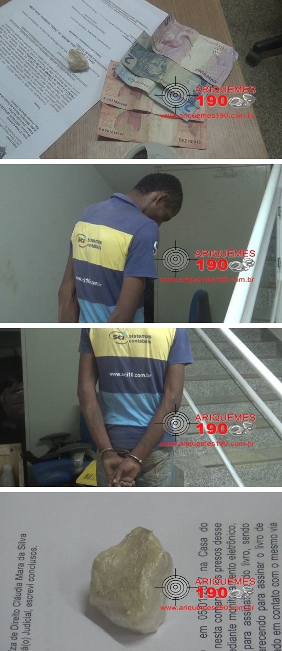 Por volta das 22h30min de sábado (26/08), uma guarnição do Grupo de Operações Especiais (GOE) realizava patrulhamento ostensivo pela Avenida Capitão Silvio, no Setor de Grandes Áreas, quando os Policiais avistaram o elemento F.S.O. de 32 anos, pulando o muro que delimita um terreno limpo e o antigo presídio, onde funciona o Albergue Municipal. O sujeito ainda tentou fugir, mas foi abordado pelos PMs e com ele localizada uma mochila contendo uma camiseta branca e a quantia de R$ 29,00 em dinheiro. O sujeito disse aos Policiais que estava naquele local chamando o proprietário do terreno, mas não soube dizer por qual motivo estava chamando e nem o nome do proprietário do terreno. Os Policiais do GOE fizeram uma varredura na área próxima ao muro dentro do Albergue e na área onde o elemento foi flagrado tentando pular o muro, sendo que os Agentes Penitenciários que estavam ajudando na ocorrência, disseram que tinham a informação que alguns detentos estavam esperando a entrega de entorpecentes. As equipes do GOE e dos Agentes Penitenciários encontraram uma caixa de madeira encostada no muro abaixo da guarita, sendo que o matagal ao redor da referida caixa estava amassado, onde foi encontrada uma porção considerável de uma substância aparentando ser crack. O sujeito detido foi novamente questionado e disse desta vez que só estava tentando pular o muro para dentro do terreno, com o objetivo de furtar um veículo, mas os Policiais averiguaram que o único veículo existente no terreno era um caminhão velho, bastante deteriorado. Os PMs e os Agentes concluíram que o suspeito foi até o Albergue para jogar a droga aos detidos, mas percebeu que havia um Agente Penitenciário fazendo ronda junto ao muro e ao ser flagrado iniciou fuga, acabando por ser avistado pelos Policiais. Ao ser realizada Pesquisa Nominal, foi localizada em desfavor do conduzido um Mandado de Prisão, conforme Processo nº 0003166-89.2016.8.22.0002, expedido pela 2ª Vara Criminal da Comarca de Ariquemes pelo crime de Tráfico de Drogas. Após passar pelo Exame de Corpo de Delito no Instituto Médico Legal (IML), o sujeito foi apresentado na Casa de Detenção de Ariquemes para fiel cumprimento do referido Mandado, sendo que a ocorrência nº 143139/17, foi registrada na Delegacia Geral, para as providências cabíveis.