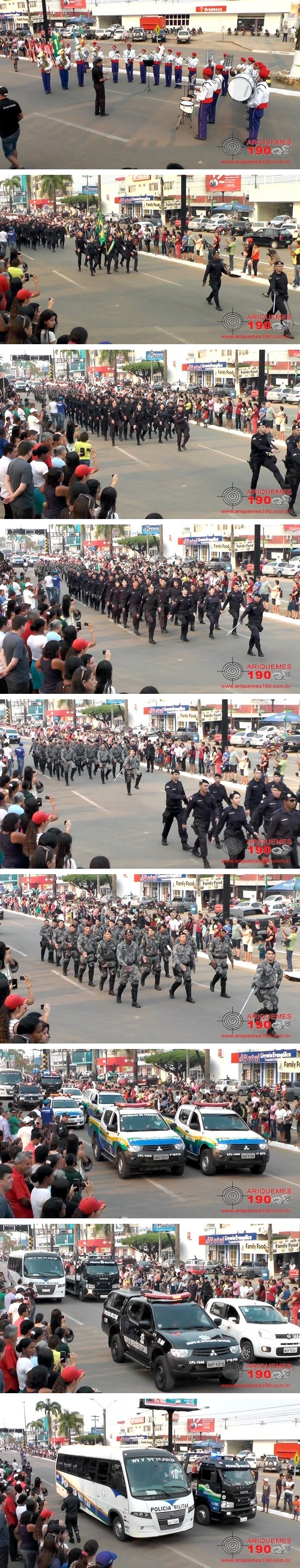 O tradicional Desfile Cívico que celebra da Independência do Brasil no dia 7 de Setembro a cada ano supera as expectativas de público em Ariquemes, levando temas inovadores para a Avenida Tancredo Neves. No ano de 2017 não podia ser diferente, marcando presença a Polícia Militar, Escola Militar Tiradentes III, Banda Municipal, Corpo de Bombeiros, Guarda Municipal, SAMU, Guarda Mirim, DETRAN entre outros. As escolas municipais desde as crianças aos adolescentes levaram o tema 40 anos do município de Ariquemes. Os cidadãos não poderiam deixar de prestigiar este grande espetáculo de desfile, marcando presença em peso as famílias que vibraram com cada pelotão que passou pela Avenida.