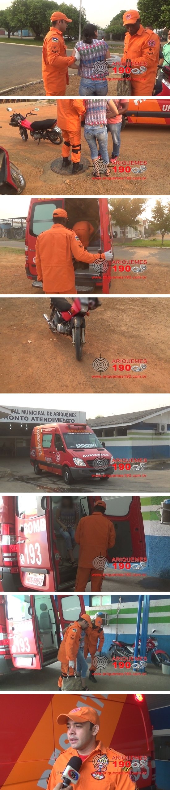 Na manhã deste sábado 09/09, por volta das 7h40m, a guarnição do Corpo de Bombeiros foi acionada a comparecer na Av. Tabapuã, no Setor 03 de Ariquemes, para atender uma ocorrência de acidente de trânsito. Ali chegando, o Cabo R. Souza e Cabo Reis, se depararam com a mulher apresentado ferimentos no pé e no cotovelo. A vítima relatou que teve uma colisão lateral com outra moto, onde seu pé acabou ficando preso. Diante do exposto, os Militares conduziram a vítima ao pronto socorro, para receber atendimento médico especializado.