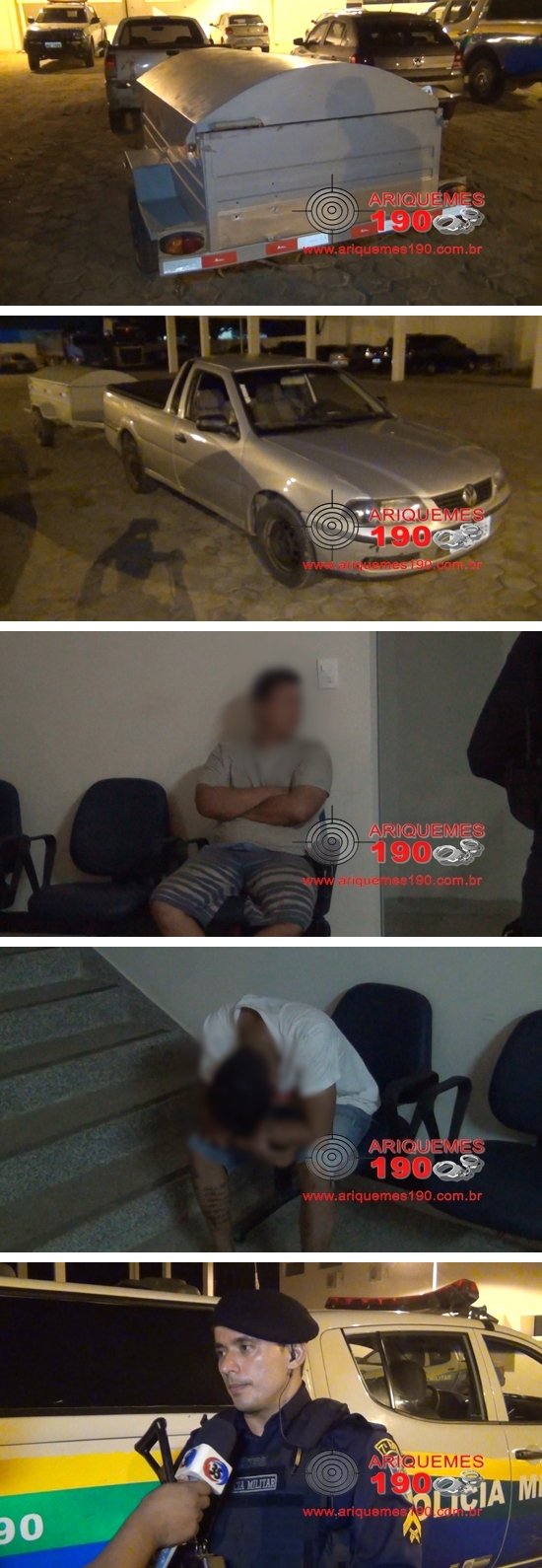 Por volta da 00h20min da madrugada deste sábado (30/09), as guarnições da Patrulha Reforço 01 e 02 realizavam ronda ostensiva pelo Km-04 da BR-421, quando avistaram um veículo da marca Volkswagen, modelo Saveiro de cor prata puxando uma carretinha de cor cinza, sem placa e como os Policiais sabiam que em Ji-Paraná haviam furtado um reboque na quinta-feira (28/09), conforme a ocorrência nº 165151/17, resolveram fazer a abordagem para checar a procedência da carretinha, sendo que no carro e com os ocupantes D.R.N. de 27 anos e W.F.G.A. de 22 anos, nada de ilícito foi encontrado, mas o número do chassi do reboque tinha sido lixado e repintado e a dupla não apresentou os documentos da carretinha, momento em que o elemento de 27 anos contou que na quinta-feira pegou o Saveiro emprestado e foi até Ji-Paraná, onde sozinho furtou o reboque, dizendo ainda que a tampa da carretinha estava em sua residência, localizada na 7ª Rua do Setor 09. Os Policiais enviaram uma foto da carretinha a um casal de músicos de Ji-Paraná, que são proprietários do reboque e o casal reconheceu o equipamento como sendo o reboque furtado deles na quinta-feira. Mediante os fatos os indivíduos foram conduzidos a UNISP, onde foi registrada a ocorrência nº 165571/17, na Delegacia Geral para posterior restituição do reboque aos seus verdadeiros proprietários.