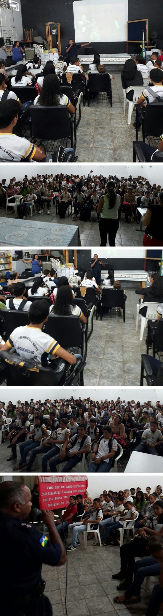 Hoje (06/10), em Ariquemes, o Programa Educacional de Resistência às Drogas - Proerd do 7° Batalhão de Polícia Militar – 7°BPM, realizou palestras de prevenção ao uso de drogas e à violência para aproximadamente 400 (quatrocentos) alunos do 6º ao 9º ano do ensino fundamental da escola estadual de ensino fundamental e médio Jardim das Pedras.