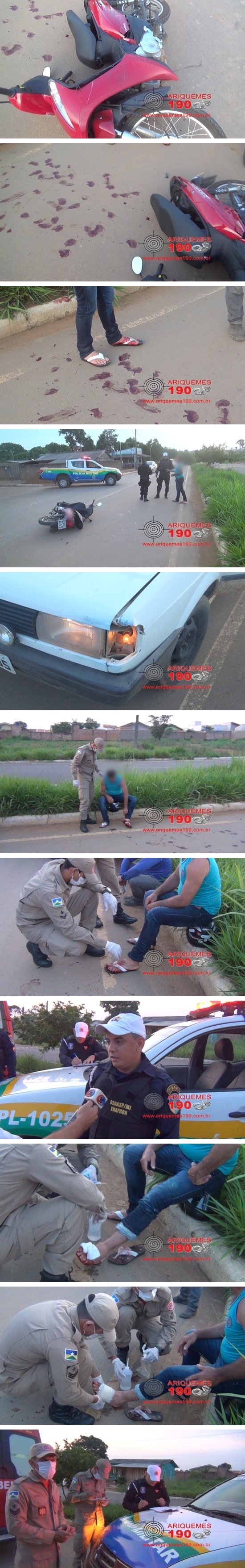ARIQUEMES: Acidente entre Saveiro e moto deixa vítima ferida na Av. Machadinho