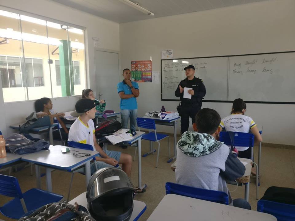 A Patrulha Escolar está realizando um ciclo de palestras em escolas púbicas de Ariquemes. “Drogas” foi o tema da palestra ministrada na última sexta-feira (20/10) para cerca de 100 alunos do 6° ano ao 2°anos do ensino médio da escola polo municipal Mafalda Rodrigues, localizada no Km460 da BR 364 área rural.