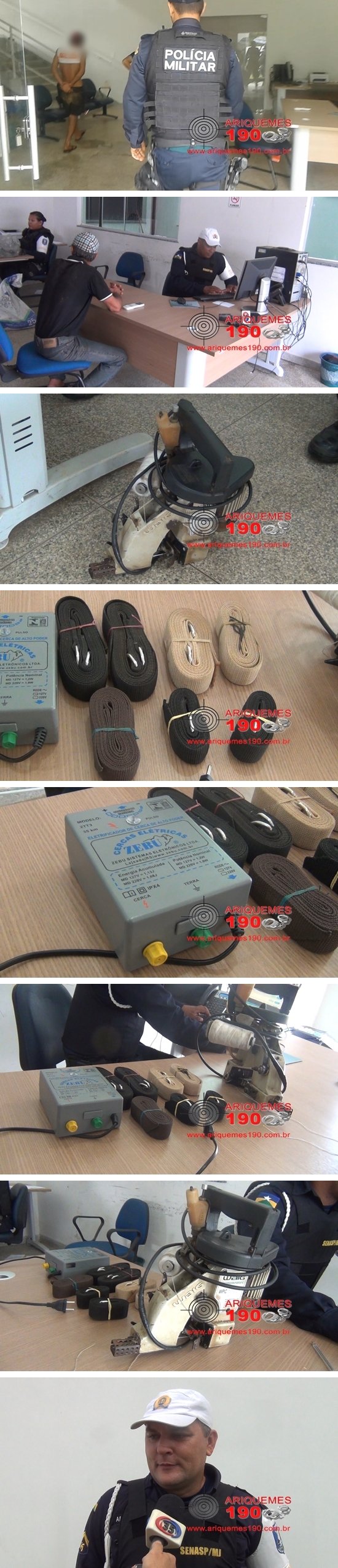 Por volta das 10h30min de quinta-feira (30/11), uma guarnição da Polícia Transito (PTran), foi acionada a comparecer em uma loja de produtos agropecuários, localizada no Km-01 da BR-421, onde o comerciante E.P.S. de 42 anos, contou que a sua loja foi arrombada e furtada na madrugada de domingo para segunda-feira (27/11) e levado uma costuradeira para sacaria, uma balança de mesa, um pulverizador de costa, um energizador de cerca elétrica, uma garrafa térmica de 05 litros, 12 Limas para motosserra, 09 facões, 18 quilos de pregos, 03 chicotes de corda, 04 correias duplas para sela de cavalo, uma sela para cavalo e um pen drive. O comerciante disse ainda que minutos antes o elemento N.I.N. de 47 anos, chegou a sua loja e ofereceu alguns produtos, momento em que o comerciante reconheceu alguns deles como sendo furtados de sua loja e segurou o sujeito até a chegada dos Policiais. O suspeito falou aos PMs que pegou os produtos do indivíduo conhecido por Gambá, que mora com ele no mesmo barraco e que no barraco estavam outros objetos de procedência duvidosa. A guarnição foi ao local onde mora o suspeito e o elemento Gambá, no Bairro Marechal Rondon e além de encontrar o indivíduo D.S.L. de 29 anos, vulgo Gambá, localizou a costuradeira, o energizador e 07 fitas para amarrar sela, todos furtados na loja. Mediante os fatos os suspeitos foram apresentados à autoridade plantonista na Delegacia Geral, para as providências cabíveis.