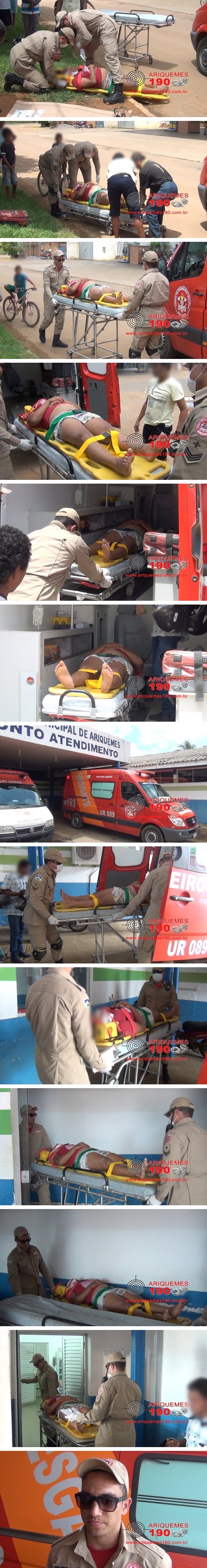Por volta das 11h15m deste domingo 17/12, uma guarnição do Corpo de Bombeiros foi acionada a comparecer na Avenida Canaã no Bairro 25 de Dezembro, onde havia acontecido uma colisão entre motos. Chegando ao local, os Militares constaram que haviam três vítimas, sendo que duas delas não quiseram ser encaminhadas ao pronto socorro. Uma mulher que reclamava de dores na região da tíbia (osso da canela) da perna esquerda permaneceu caída ao solo, onde foi imobilizada pelos Bombeiros. Segundo populares, no local houve uma colisão entre duas motos. Diante do exposto, a vítima foi conduzida ao pronto socorro para receber atendimento médico especializado.