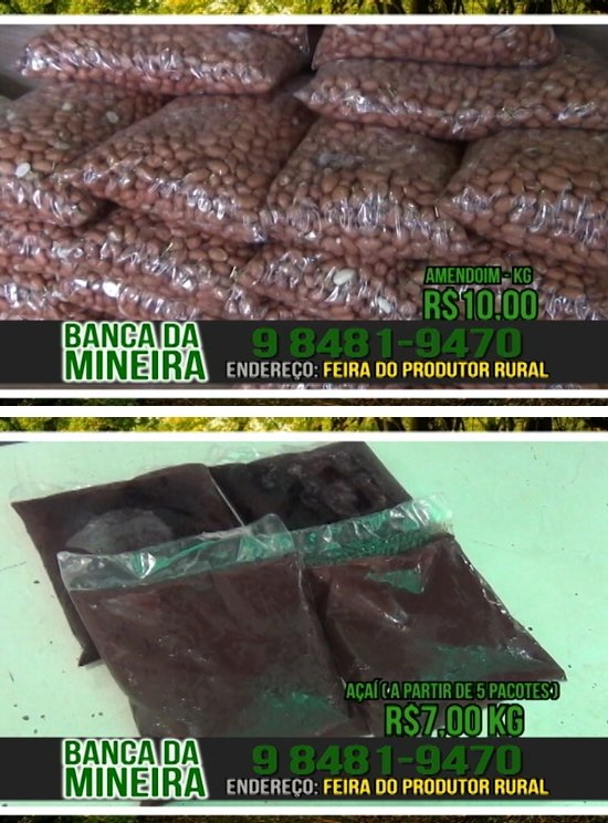 Banca da Mineira! Em ótima localização na Feira do Produtor Rural. Atendimento de segunda á sábado das 7hrs ás 18hrs e aos domingos até ás 13hrs, telefone 9 8481-9470.