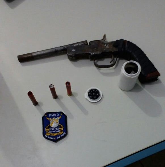 Eliel foi abordado e durante revista pessoal em sua mochila foi encontrada uma arma de fogo do tipo garrucha calibre .36, municiada contendo três cartuchos, um deles deflagrado, em um pote com 62 (sessenta e dois) balotes de recarga. A motocicleta que ele conduzia estava com o número do chassi ilegível, ao realizar consulta pela numeração do motor foi constatado que esta identificação pertence à outra motocicleta, confirmando assim a adulteração do veículo. Diante dos fatos foi dada voz de prisão ao rapaz e conduzido à delegacia para medidas cabíveis.