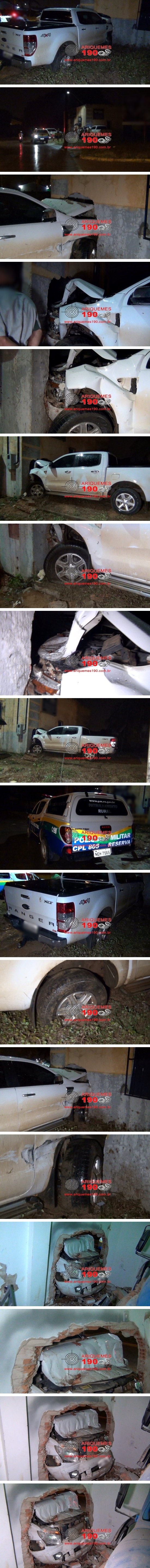 Por volta das 20 horas, desta segunda-feira 05/02, a guarnição da Polícia Militar foi acionada a comparecer na Avenida Quatro Cachoeiras no Setor 03 de Ariquemes, onde havia acontecido um acidente de trânsito. Chegando ao local, os Militares se depararam com uma caminhonete colidida na parede de uma empresa. Indícios levam a crer que o condutor da caminhonete da marca Ford, modelo Ranger de cor branca, transitava pela Avenida, quando perdeu o controle da direção do veículo, invadiu um terreno vazio onde haviam quatro estacas de concreto, em seguida colidiu com a parede da empresa de lanternagem. A caminhonete destruiu as estacas e quebrou a parede da empresa. O veículo teve a frente destruída. Os motivos que fizeram o condutor perder o controle ainda são desconhecidos.