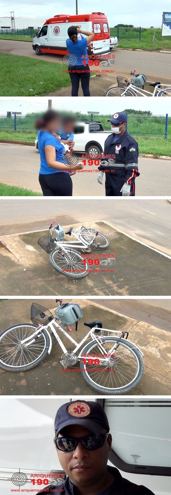 O acidente aconteceu na manhã desta quarta-feira 07/02, quando a equipe do Serviço de Atendimento Móvel de Urgência (SAMU), foi acionada a comparecer na rotatória entre as Avenidas JK e Guaporé para atender uma criança que seria vítima de uma queda. Chegando ao local, os socorristas se depararam com o bebê de um ano no colo da mãe que informava que o menino estava na cadeirinha da bicicleta com o pai, quando ambos vieram a cair ao solo. O bebê sofreu escoriações e um corte no nariz. Os socorristas prestaram os primeiros atendimentos, em seguida conduziram a criança ao pronto socorro do hospital municipal, para que sejam feitos exames e o bebê receba atendimento médico especializado.
