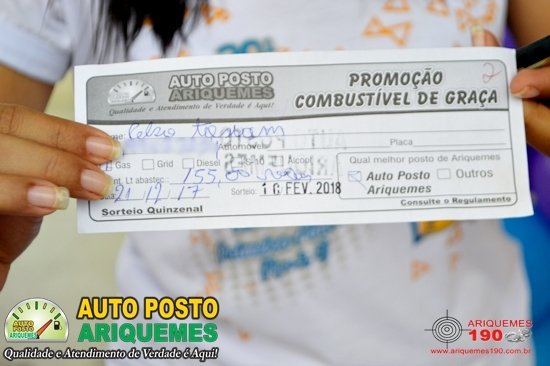 A Promoção Combustível de Graça está fazendo a alegria de muitos ariquemenses e na manhã deste sábado 10/02, o sorteio especial de carnaval fez a felicidade dos seguintes clientes: