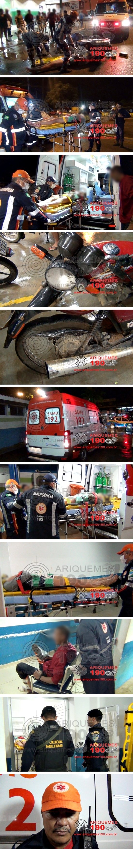 Na noite desta terça-feira 13/02, a equipe de socorro do Serviço de Atendimento Móvel de Urgência (SAMU), foi acionada a comparecer na Avenida Tancredo Neves, no centro de Ariquemes, onde havia acontecido um acidente de trânsito. Chegando ao local, os socorristas se depararam com duas vítimas apresentando escoriações, sendo que a mulher reclamava também de fortes dores na região das pélvis. A mulher foi imobilizada e juntamente com o rapaz, foi encaminhada ao pronto socorro para receber atendimento médico especializado. Segundo as vítimas, as mesmas transitavam em uma motocicleta, quando foram atingidas por uma caminhonete que não permaneceu no local. A Polícia Militar compareceu no Pronto Socorro onde coletou os dados para o registro do Boletim de Ocorrência de Acidente de Trânsito (BOAT).