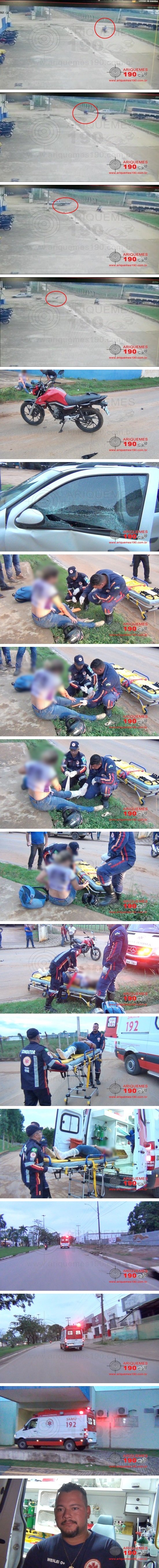 13/02/2026 : Casal fica ferido após colisão entre moto e carro na Avenida Jamari em Ariquemes – Vídeo