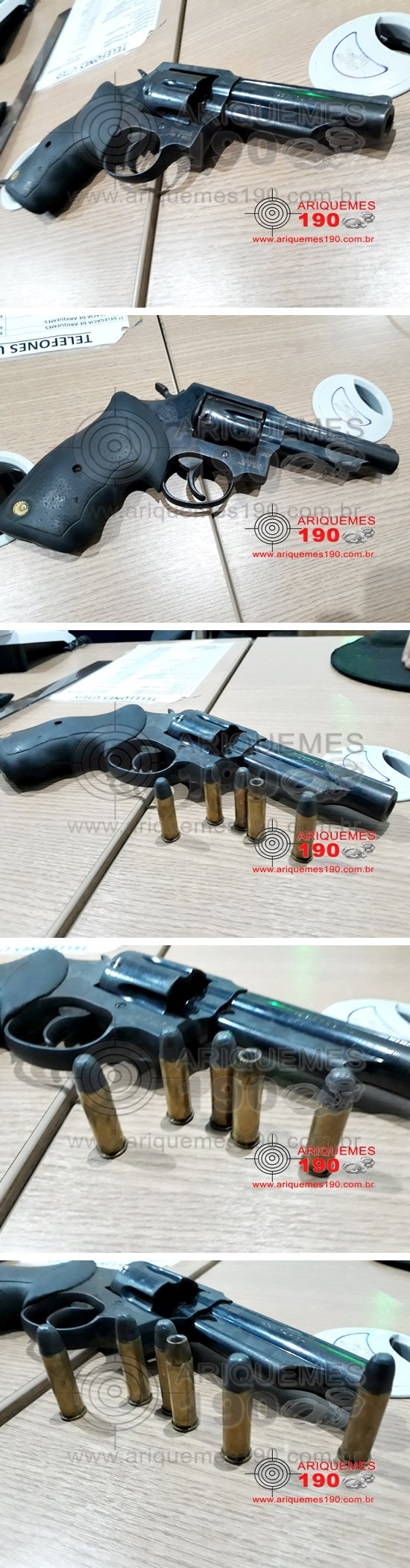 Na manhã desta segunda-feira 12/03, a guarnição da Polícia Militar realizava patrulhamento de rotina pelo Bairro Nova União I, quando ao entrar a Avenida Diamantes, os Militares avistaram um indivíduo passar em alta velocidade pela viatura em uma motoneta da marca Honda, modelo Biz de cor azul. A guarnição fez o acompanhamento do suspeito, sendo que já próximo a Av. Jaru Setor 08, durante a abordagem foi encontrado no interior da motoneta, uma arma de fogo tipo revolver marca Taurus, acabamento oxidado com numeração ilegível, aparentado ter os dois últimos números adulterados, contendo seis munições intactas. Diante do exposto, o infrator e a arma foram conduzidos a Unidade Integrada de Segurança Pública (UNISP), onde foi registrado o Boletim de Ocorrência Policial (BOP), para a tomada das providências.