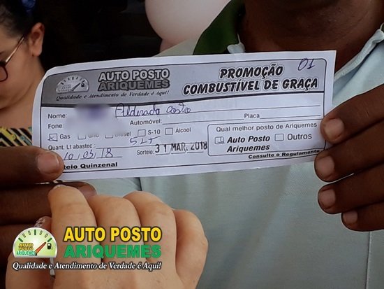 O próximo sorteio acontecerá no dia das mães (12/05). Não perca tempo e venha você também para o Auto Posto Ariquemes onde você abastece, preenche seu cupom e concorre a mesma quantidade em litros de combustível que você abasteceu. Muitos ariquemenses já foram contemplados com a promoção Combustível de graça, venha você também. Auto Posto Ariquemes, na Avenida Capitão Silvio próximo a RO-257 saída para Machadinho, telefone 3536-2777.