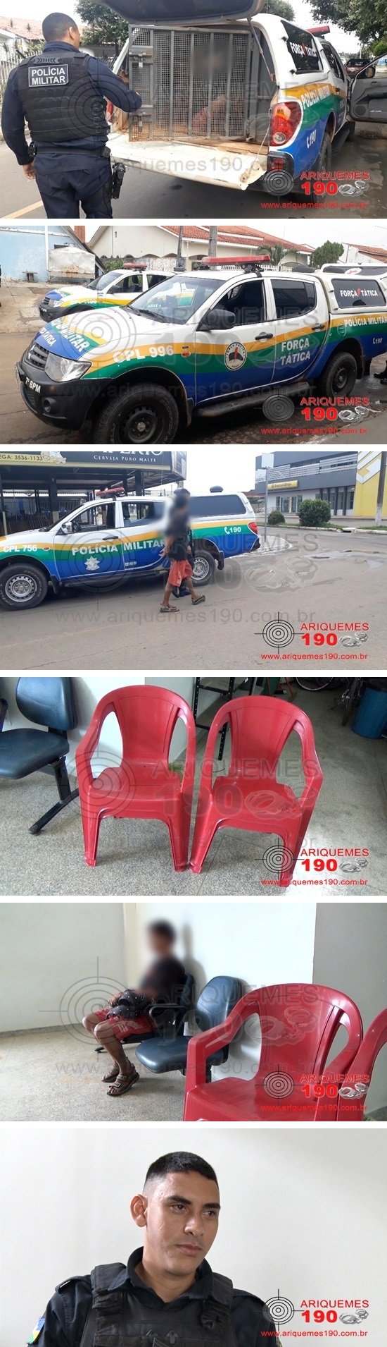 Na madrugada desta quinta-feira (12/04), uma guarnição da Patrulha Charlie realizava patrulhamento de rotina pela Avenida Tancredo Neves, sentido Avenida Canaã, no centro da cidade, quando avistaram um veículo da marca Nissan, modelo Sentra de cor preto, placas de Jaru-RO, que trafegava no sentido oposto com a porta do passageiro aberta e com alguém acenando com o braço desesperadamente. A viatura acompanhou o veículo e mesmo com ordens de estacionar, o condutor continuou o deslocamento, até que foi abordado na esquina entre a Avenida Tancredo Neves e a Avenida Jaru, no Setor 03, momento em que a garota A.S.P.G. de 19 anos, desembarcou do carro apavorada e chorando, dizendo que estava sendo levada para ser executada e esquartejada pelos membros da facção Comando Vermelho Dentro do veículo estavam os suspeitos: G.A.S. de 30 anos, J.A.M. de 26 anos e M.A.C. de 34 anos. O elemento de 30 anos, disse aos Policiais que estava armado, mas que antes da abordagem jogou um revólver pela janela, sendo que os Policiais fizeram buscas e não localizaram a tal arma. O elemento disse ainda que faz parte do Comando Vermelho e que procura pela garota há pelo menos 03 anos, pois está em busca de vingança, uma vez que ela entregou seu filho para membros do Primeiro Comando da Capital (PCC) para ser esquartejado. Disse que iria mata-la cortando primeiro o seu pescoço, depois ia esquartejar a jovem, filmar e enviar os vídeos para os membros da facção e que só não o fez por causa da abordagem. O sujeito disse ainda que recebeu uma missão da facção, o chamado “Salve” e deve cumpri-lo a qualquer custo, afirmou também que possui vários homicídios e diversos Roubo a Bancos e que é procurado pela Polícia Federal. O elemento falou que pode passar o tempo que passar, que no dia que sair novamente da cadeia vai procurar a garota e mata-la. Na carteira porta cédulas do infrator os Policiais encontraram 02 comprovantes de depósito, feitos em uma lotérica, no valor de R$ 1.500,00 em dinheiro em favor do elemento A.S.G. que possui um Mandado de Prisão em aberto e uma permissão para conduzir motos na cidade de Guayaramerín, na Bolívia. O indivíduo entregou aos Policiais um molho com 03 chaves afirmando que era de sua casa, mas que preferia morrer ao invés de dizer seu endereço. Os três elementos foram apresentados à autoridade plantonista na Delegacia de Repressão aos Crimes Contra a Vida, onde foi registrada a ocorrência nº 66233/18, para as providências cabíveis ao caso.