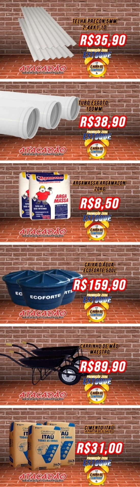 Promoção Zera Estoque Atacadão Materiais de Construção, a hora de comprar é agora! Confira: