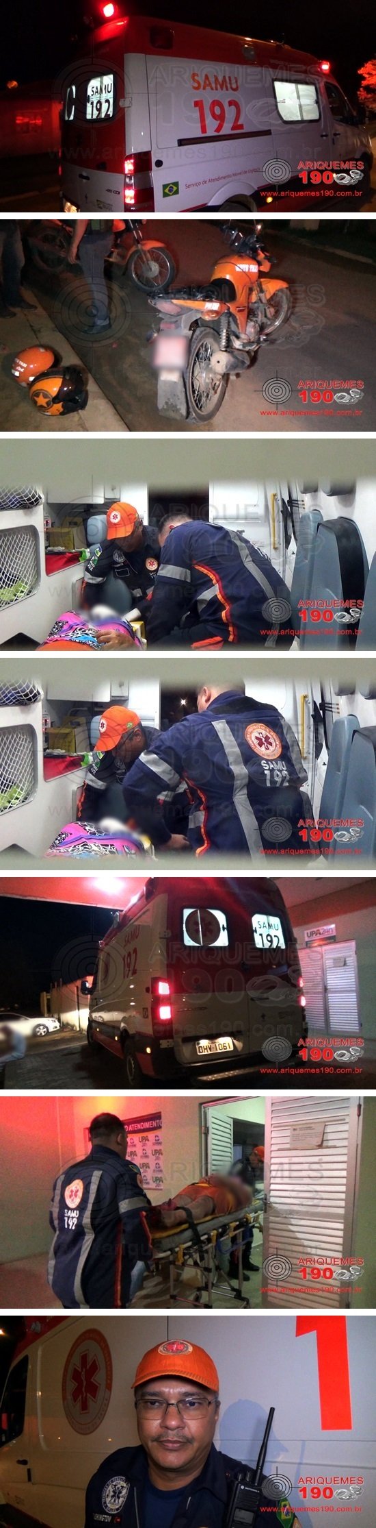 No início da tarde desta quarta-feira 02/05, a equipe do Serviço de Atendimento Móvel de Urgência (SAMU), foi acionada a comparecer em um cruzamento na Rua Ariquemes no Bairro BNH, onde havia acontecido um acidente de trânsito. Chegando ao local, os socorristas foram informados que a vítima transitava em uma motocicleta, quando no cruzamento, houve a colisão com um carro. O condutor apresentava escoriações pelo corpo e uma luxação do joelho. Os socorristas prestaram atendimento pré-hospitalar a vítima que foi encaminhada ao pronto socorro para receber atendimento médico especializado.