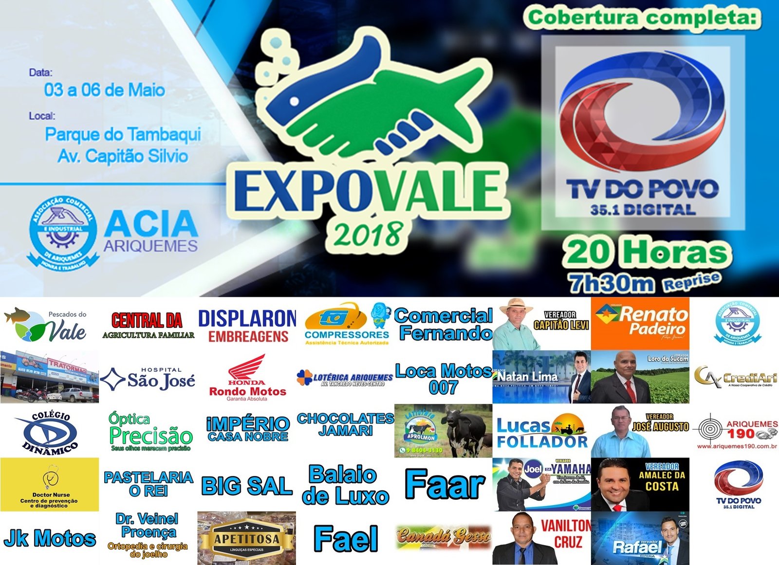 Nem a chuva e o mal tempo conseguiram atrapalhar o movimento do primeiro dia da EXPOVALE que contou com a participação maciça da população. Durante todo o dia aconteceram várias programações e palestras. Já à noite, aconteceu uma solenidade de abertura contando com a presença de autoridades e grande queima de fogos. A noite foi finalizada com muita festa através do Festival de Música. E você não pode perder esta grande oportunidade de laser e de fazer ótimos negócios. A 2ª Edição da Expovale acontece até domingo dia 06/05. A cobertura completa do evento você também pode conferir através do programa Especial Expovale que está sendo transmitido pela TV do Povo Canal 35 e digital 35.1, a partir das 20 horas com reprise as 7h30m do dia seguinte.