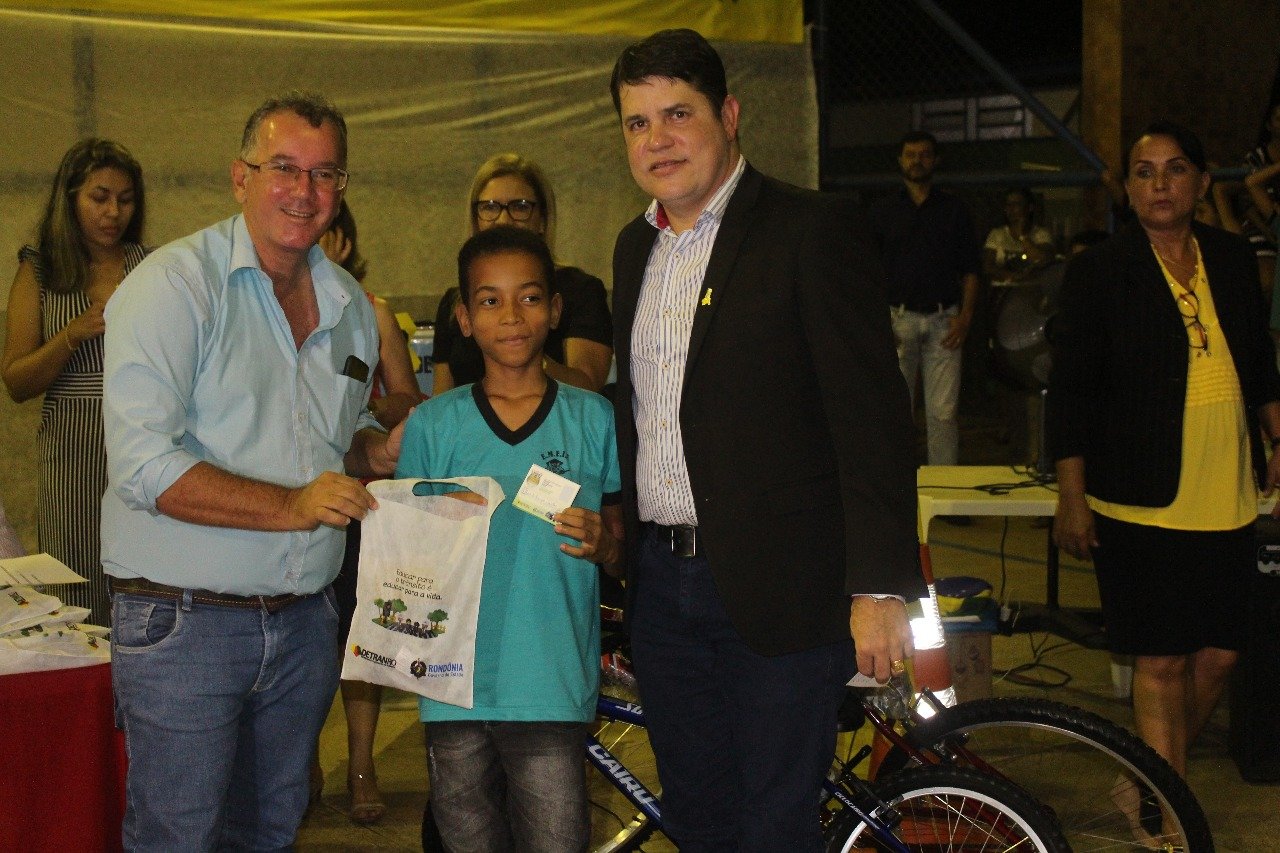 O evento aconteceu na Escola Levi Alves de Freitas, no Setor Parque das Gemas em Ariquemes. José Augusto analisa a campanha educativa “Mini Multa”, que é uma ação do Detran-RO com o objetivo de desenvolver nas escolas um trabalho de prevenção de acidentes de trânsito com palestras e distribuição de blocos de “Mini Multa”, carteirinhas e cartilhas educativas para as crianças. “Quero parabenizar o Governo do Estado e o Detran, por estarem oferecendo formação de trânsito às crianças, nossos futuros motoristas. Isso é uma possibilidade de termos um trânsito menos violento” disse José Augusto.