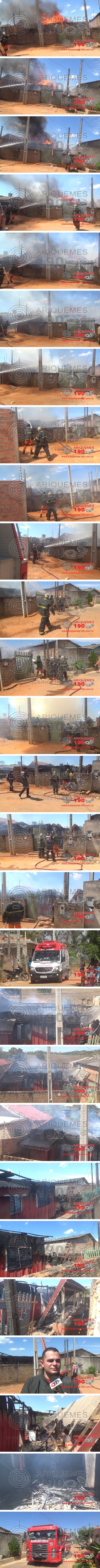 Por volta das 12 horas, deste sábado 21/07, a guarnição do Corpo de Bombeiros recebeu uma solicitação para comparecer na Rua Santa Luzia no Bairro Raio de Luz, onde uma casa de madeira estava em chamas. Os Bombeiros de Ariquemes com apoio de Bombeiros de Machadinho do Oeste rapidamente compareceram na residência, onde constataram que por se tratar de uma casa de madeira, as chamas já estavam bem altas e oferecia risco de se propagar para casas vizinhas. Enquanto alguns Militares combatiam o incêndio, outros Bombeiros averiguavam se havia alguma vítima. Felizmente, mesmo com o grande incêndio, ninguém ficou ferido. A guarnição também obteve êxito em combater as chamas antes que atingissem outras casas. Uma equipe da Eletrobrás esteve presente no local para assegurar que não houvesse problemas na rede elétrica da rua. Infelizmente, a casa foi completamente destruída pelo fogo e no interior da mesma, havia poucos móveis. Não foi possível constatar as causas do incêndio. Após o fogo apagado, os Militares ainda realizaram rescaldo do local, para impedir que brasas causassem um novo incêndio.