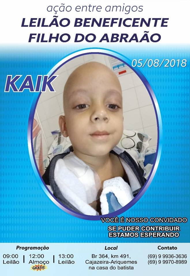 ARIQUEMES: AJUDE - Domingo acontecerá Leilão Beneficente em prol do pequeno Kaik que está tratando Leucemia