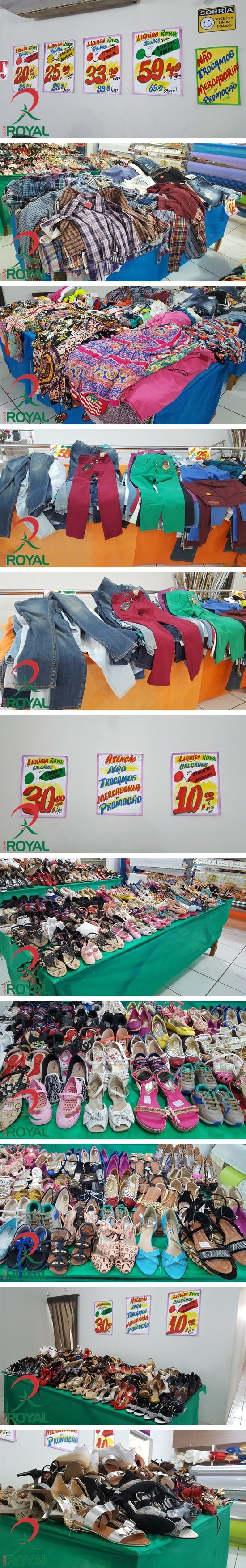Chegou a hora de você renovar o seu guarda-roupa com a grande liquidação em confecções femininas das Lojas Royal. São muitas opções de R$ 20,00 à R$ 60,00. São lindos vestidos, blusinhas, shorts e calças com preços imperdíveis. As toalhas de banho Lepper também estão com um preço incrível de R$ 18,90 a vista. Promoções válidas para as duas lojas em Ariquemes. A Royal também oferece facilidades no pagamento podendo parcelar em até 7 vezes sem juros no crediários próprio, 3 vezes para começar a pagar em 90 dias, 5 vezes para pagar em 60 dias. Corra para a Royal na Alameda do Ipê centro.