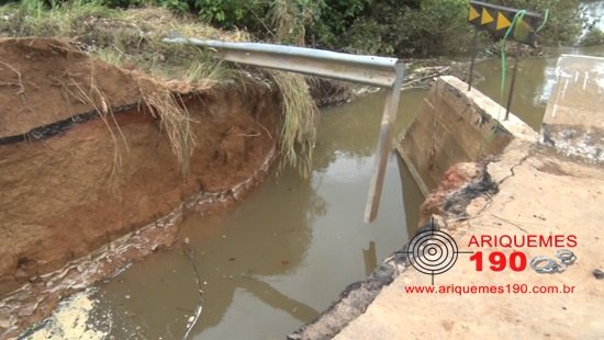 A Ponte sobre o Rio Jamari que liga a BR-364 ao município de Alto Paraíso ficou cinco dias submersa pelo e acabou sofrendo danos em sua estrutura. Após a água baixar, alguns condutores de veículo se arriscaram fazendo a travessia. Devido ao grande perigo, o DER interditou a ponte. Nesta quarta-feira 13/02, foram colocadas fitas, porém, as fitas foram retiradas, sendo necessário colocar terra para evitar o fluxo de veículos. O que já estava previsto aconteceu na manhã desta quinta-feira 14/02, a cabeceira da ponte desmoronou, formando um grande buraco que seria capaz de “engolir” um veículo se estivesse passando no local no momento. Após o término do período chuvoso, a ponte será avaliada e enquanto não forem realizados os reparos necessários, o acesso a Alto Paraíso se dará pela RO-457 (Travessão B-40).