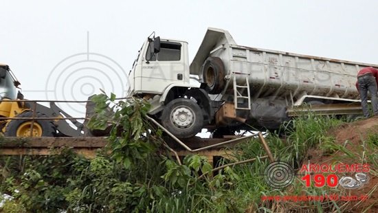 ARIQUEMES: Caçamba atinge cabeceira de ponte em acidente causado por buraco na BR-421